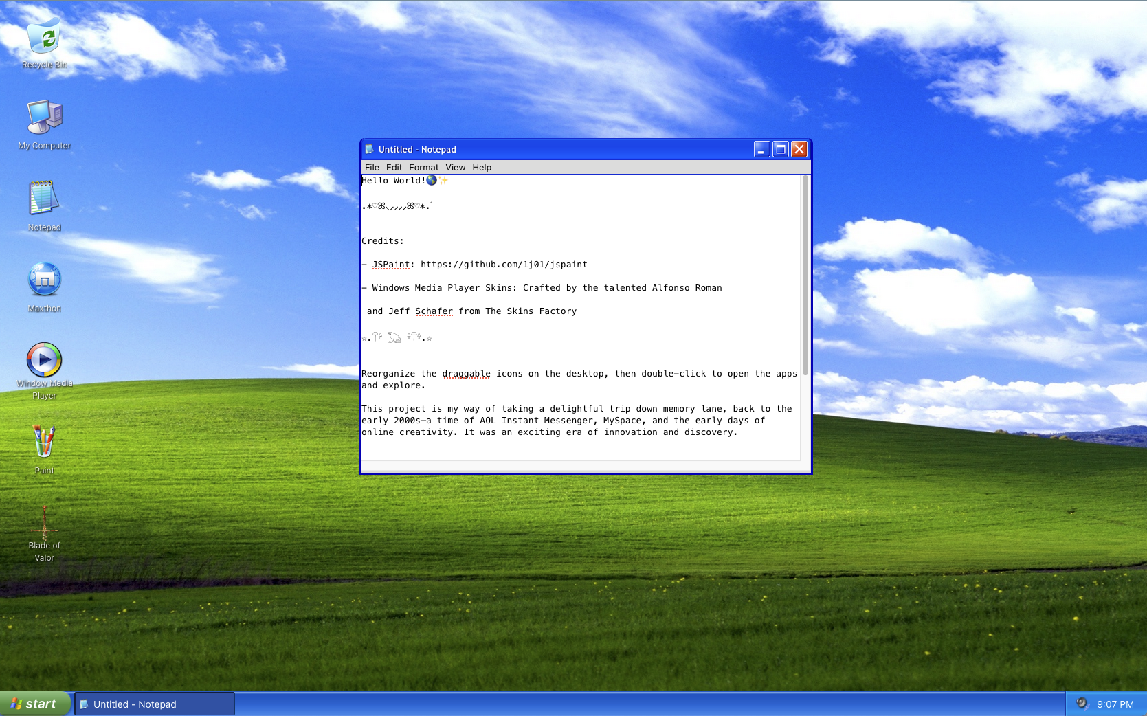 Welcome to my Windows XP-themed portfolio! This project is a nostalgic journey back to the early 2000s, recreating the iconic look and feel of the Windows XP operating system.