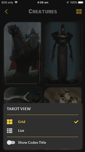 | View Settings | Tarot Screen - Grid View 2 | List View |