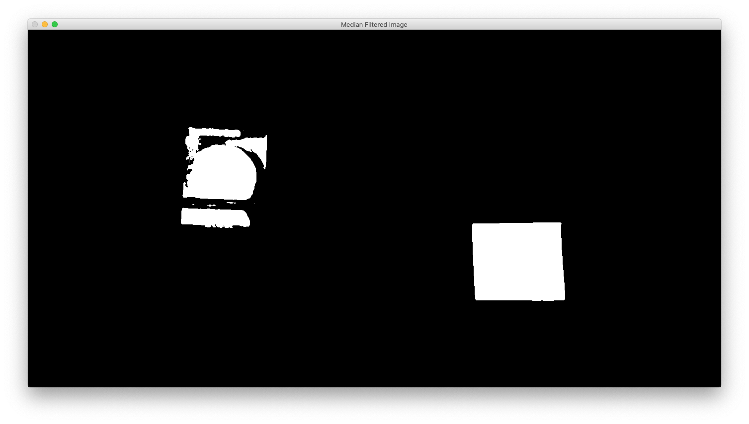 Using the warped image, we split the image into HSV channels and threshold pixels of the image. We then apply morphological transformations (erode and dilate) to preprocess. Finally, we extract the contours using cv2.findContours.