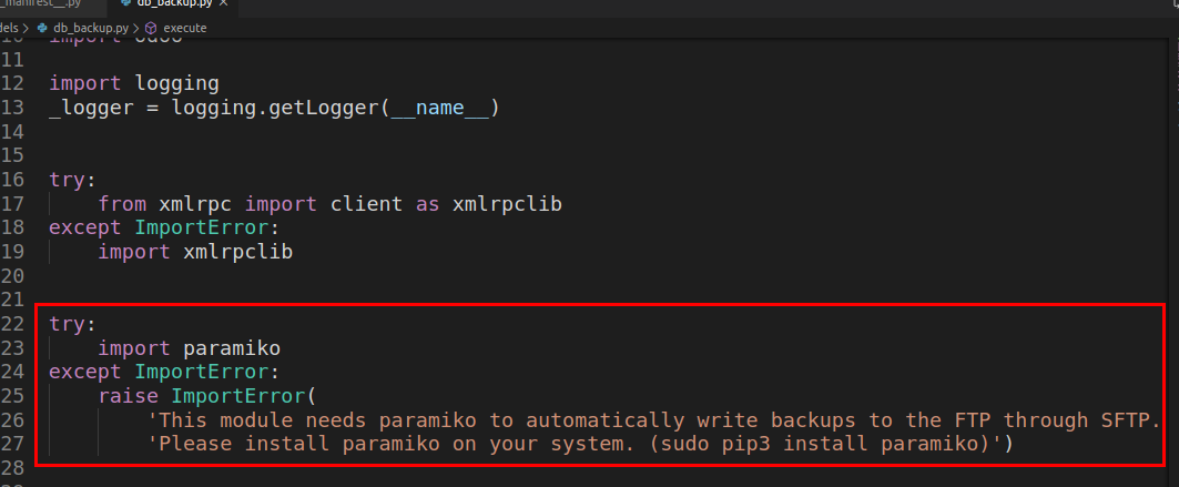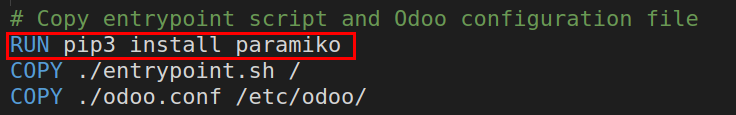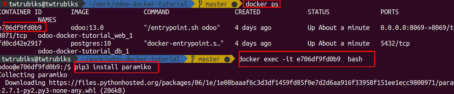 你也可以自己進去 odoo 容器中確認是否有安裝 paramiko.