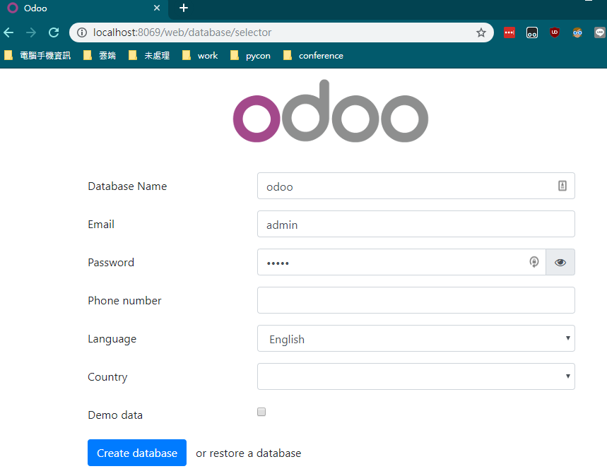 docker-compose up然後可以瀏覽 http://localhost:8069,