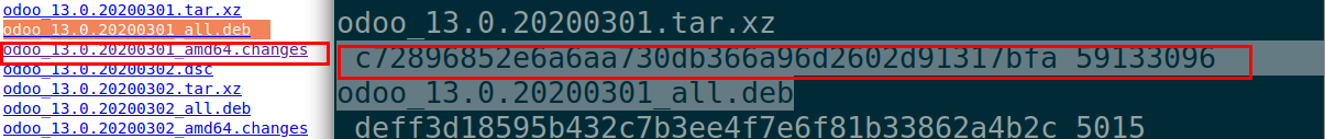 修改 ODOO_RELEASE=20200301 然後 ODOO_SHA 需要到以下的網站查看 odoo_13.0.20200301_amd64.changes,