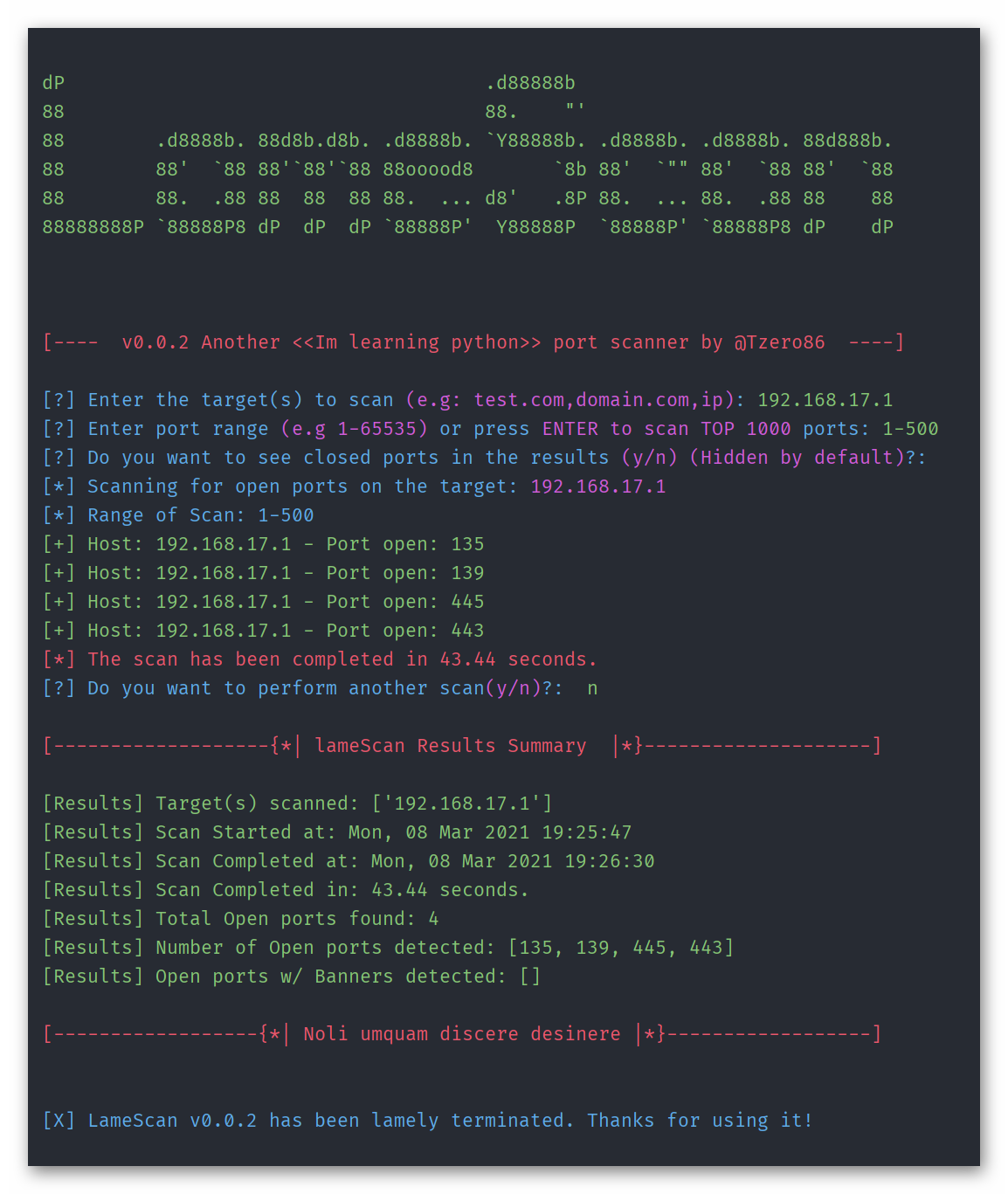 git clone https://github.com/tzero86/lameScan && cd lameScan