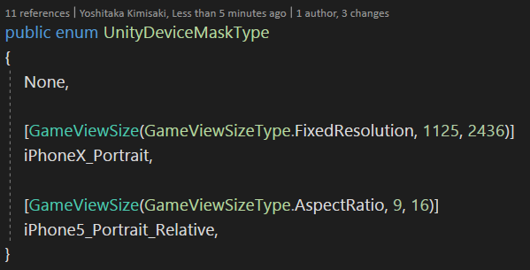 UnityDeviceMaskTypeを追加し、Assembly-CSharp.dllを作った後にUnityDeviceMaskCommand.ttを実行すると、対応デバイスが増えます。 この時、GameViewSize属性を付けておくと、エディタ上でマスクを適応した時に